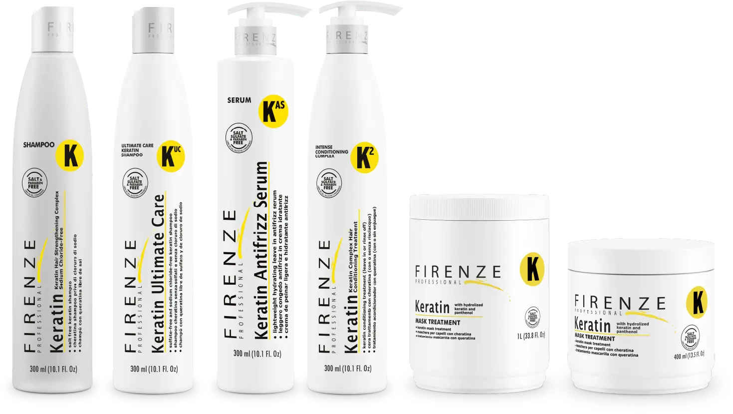 Experts recommend that after a straightening or intensive keratin treatment, nourishing, salt-free shampoos and conditioners be used. Salt can reverse the effects of the treatment, cause frizz, and bring back the hair’s natural curl. The Firenze Keratin Line is formulated with antioxidant agents, a hydrolyzed vegetable protein complex, and keratin extract that restore the hair fiber for shinier, healthier hair that is completely frizz-free.